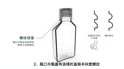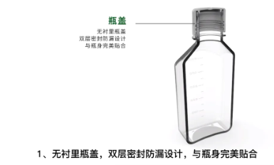 ◆無襯里瓶蓋,雙層密封防漏設(shè)計(jì),瓶口與瓶蓋有連續(xù)的直肩半扶壁螺紋,瓶蓋與瓶身完美貼合