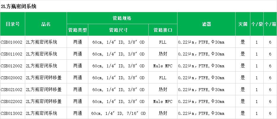 ●材質(zhì):瓶身環(huán)己二醇(共聚聚酯)(PETG),瓶蓋高密度聚乙烯(HDPE),內(nèi)管聚四氟乙烯(PTFE),外管(TPE),F(xiàn)LL接頭聚丙烯(PP)/Male MPC接頭聚碳酸酯(PC),過濾器外殼聚丙烯(PP),過濾器濾膜四氟乙烯(PTFE),均符合USP Class VI標(biāo)準(zhǔn)