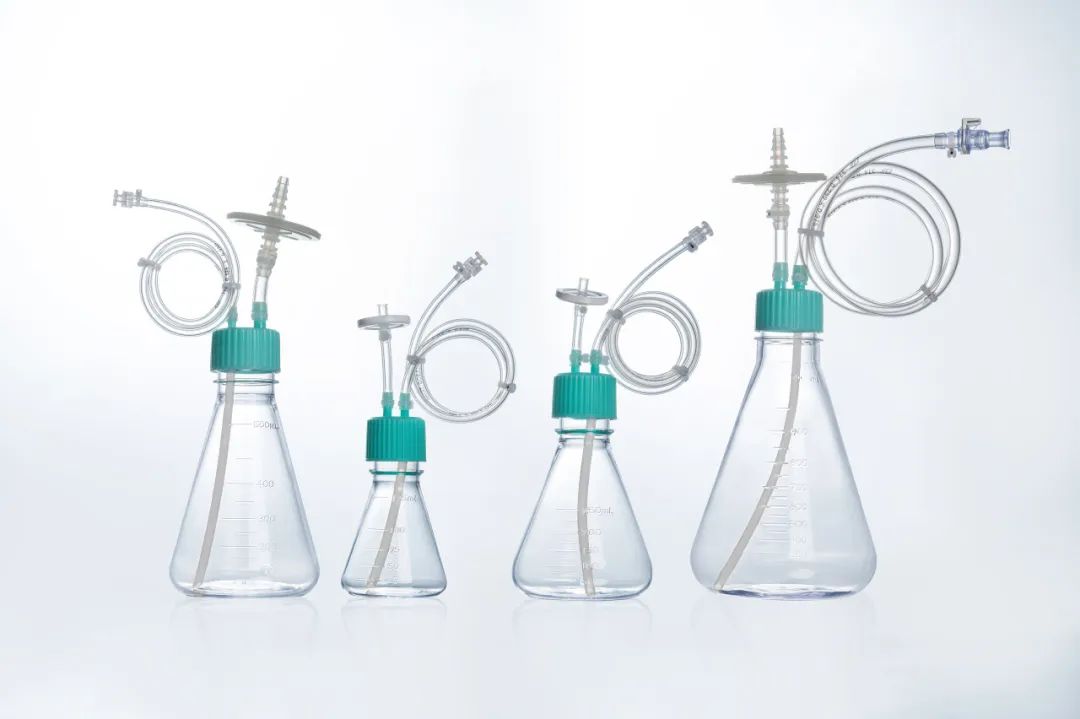 在生物制品的工業(yè)生產中,降低液體轉移、取樣等過程潛在的污染風險至關重要,三角培養(yǎng)搖瓶搭配無菌轉移蓋及管路系統(tǒng),即可避免開放式操作帶來的污染問題。