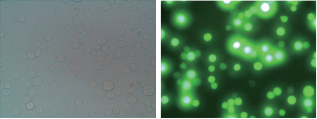 將1.5×106個(gè)/mL密度的HEK293細(xì)胞接種至ProGro™ 293 SFM,添加腺病毒進(jìn)行轉(zhuǎn)導(dǎo),轉(zhuǎn)導(dǎo)24h后在顯微鏡上觀察腺病毒的轉(zhuǎn)導(dǎo)情況,腺病毒轉(zhuǎn)導(dǎo)效率高,轉(zhuǎn)導(dǎo)效率可達(dá)95%以上