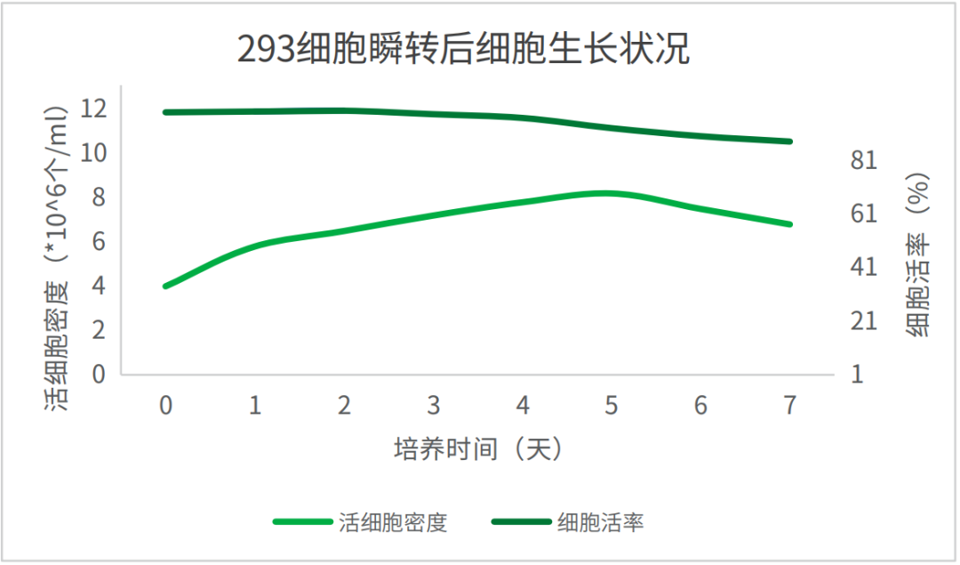 支持多種懸浮293細(xì)胞的快速擴(kuò)增和高密度生長(zhǎng),細(xì)胞密度可達(dá)1×107個(gè)/mL,細(xì)胞密度達(dá)最高時(shí)其活率還保持90%以上
