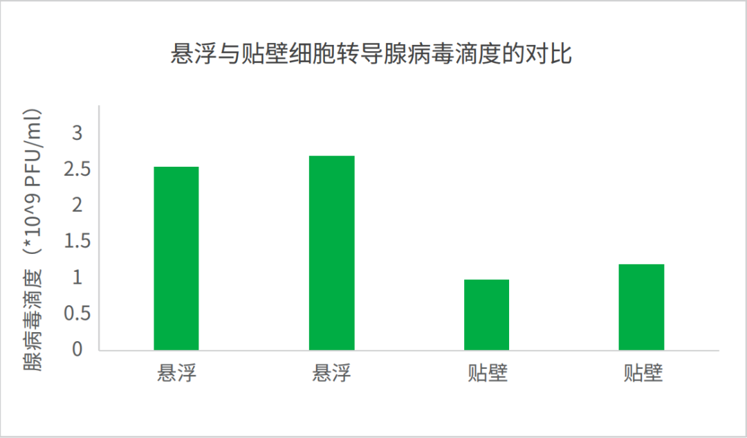 不同來(lái)源的腺病毒(帶GFP基因)使用ProGro™ 293細(xì)胞懸浮轉(zhuǎn)導(dǎo)系統(tǒng),腺病毒收獲可達(dá)≥109PFU/ml滴度,腺病毒產(chǎn)率高。
