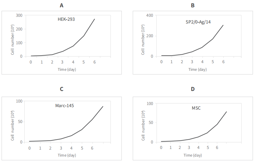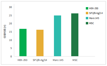 ProGro™國(guó)產(chǎn)胎牛血清分別培養(yǎng)不同細(xì)胞,常見細(xì)胞系倍增時(shí)間一般在15H~25H之間,對(duì)于難養(yǎng)細(xì)胞,倍增時(shí)間一般在25H~35H之間。