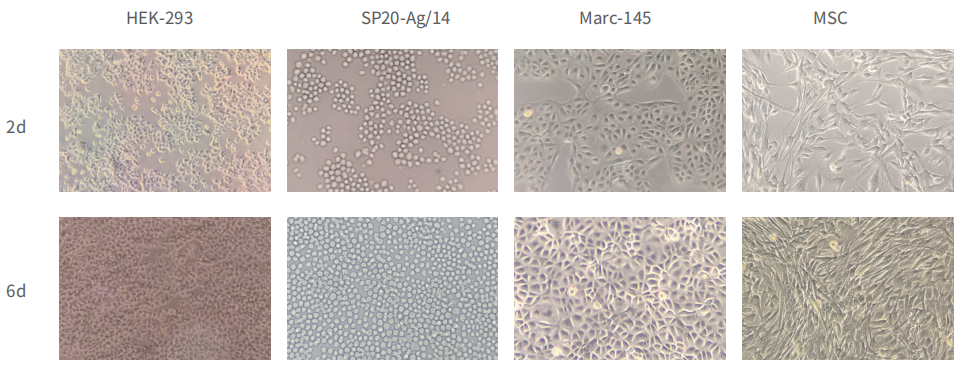ProGro™國(guó)產(chǎn)胎牛血清分別培養(yǎng)不同細(xì)胞,生長(zhǎng)趨勢(shì)明顯,且對(duì)于難培養(yǎng)的細(xì)胞,細(xì)胞狀態(tài)好,細(xì)胞增殖快。