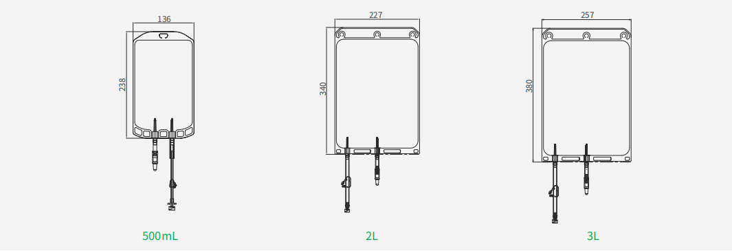 CSP101500 | 500mL | 250mL | PVC管ID3.5mm,OD5.2mm長度26cm,母魯爾接頭+堵頭 | PVC管ID4.8mm,OD7.05mm長度4.5cm,魯爾母接頭+肝素帽+硅膠套 | 是 | 1 | 25 |